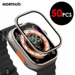 50Pcs for Apple Watch Ultra 49mm Metal Bumper Screen Protector Tempered Glass Film Aluminium Alloy Edge Accessories (Titanium)