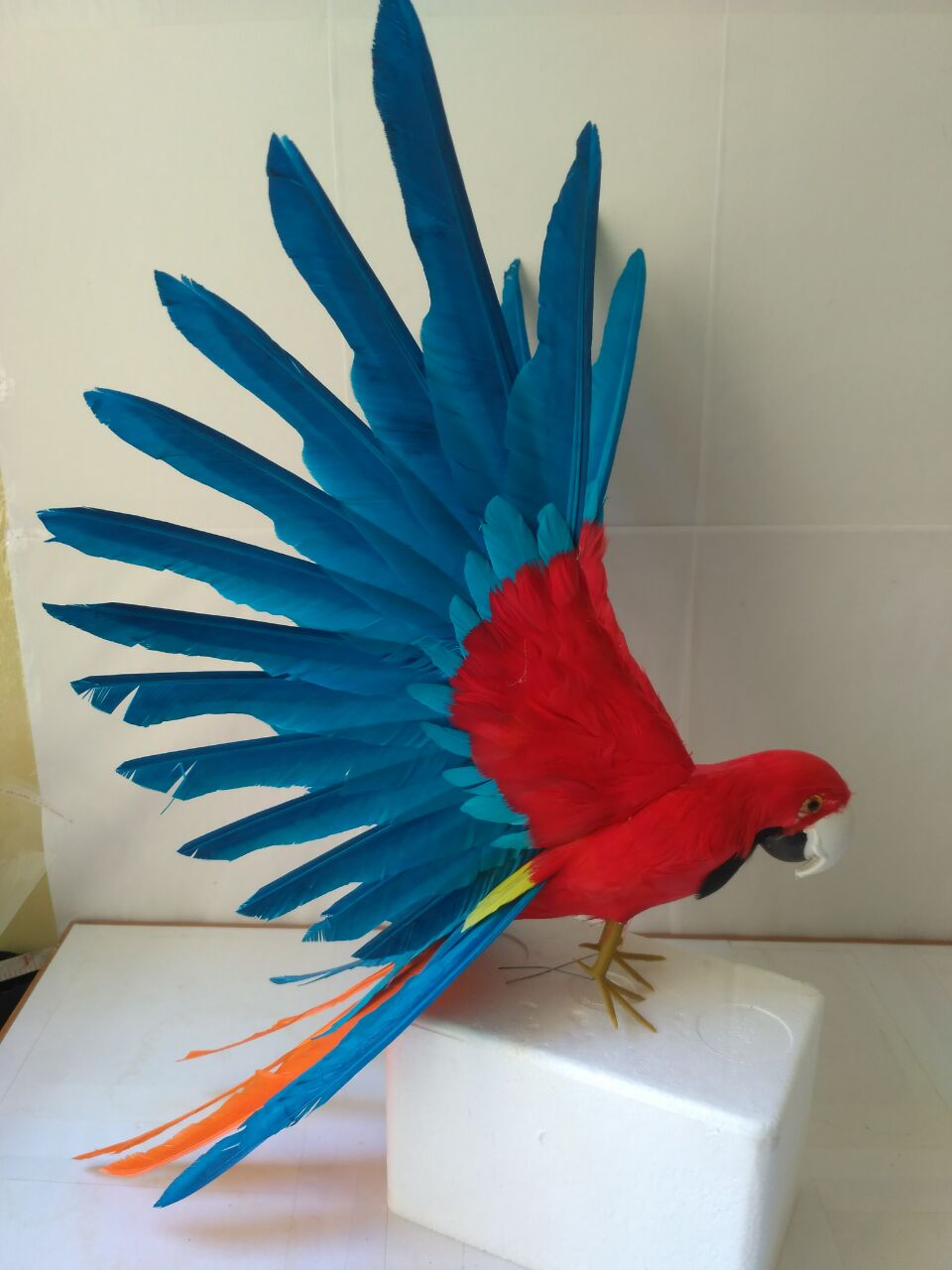 cute real life blue&red parrot model foam&feather wings parrot bird doll gift about 35x50cm d0235