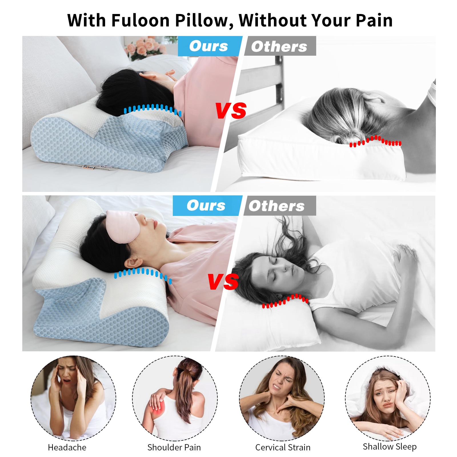 Orthopedic Memory Foam Pillow 60x37cm Slow Rebound Memory Soft Pillow Butterfly Shaped Relax Cervical Neck for Side Back Sleeper